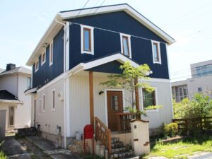 近隣にどういった建物が多いのか、色使いやトーンを参考にしながら合わせつつ、ドアや窓まわりなど部分的な箇所にアクセントカラーを採用すると、